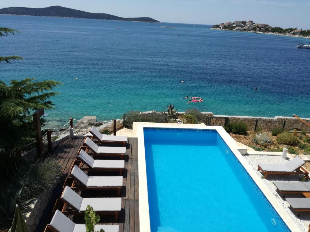 Willkommen in der Villa Sanval, einer Luxusvilla im ruhigen Sevid, direkt am Strand in der wunderschönen Bucht Koprivica. Hier finden Sie die perfekte Mischung aus Privatsphäre, Komfort und einer echten mediterranen Küstenatmosphäre für einen unvergesslichen Urlaub mit Familie und Freunden.