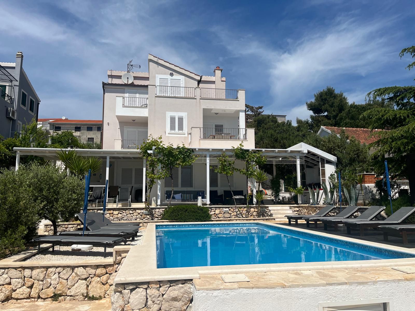 Villa Sanval is a luxury seafront villa in Sevid, featuring a private heated pool, a beach directly in front of the villa, a private boat mooring, spacious terraces, and accommodation for up to 12 guests.